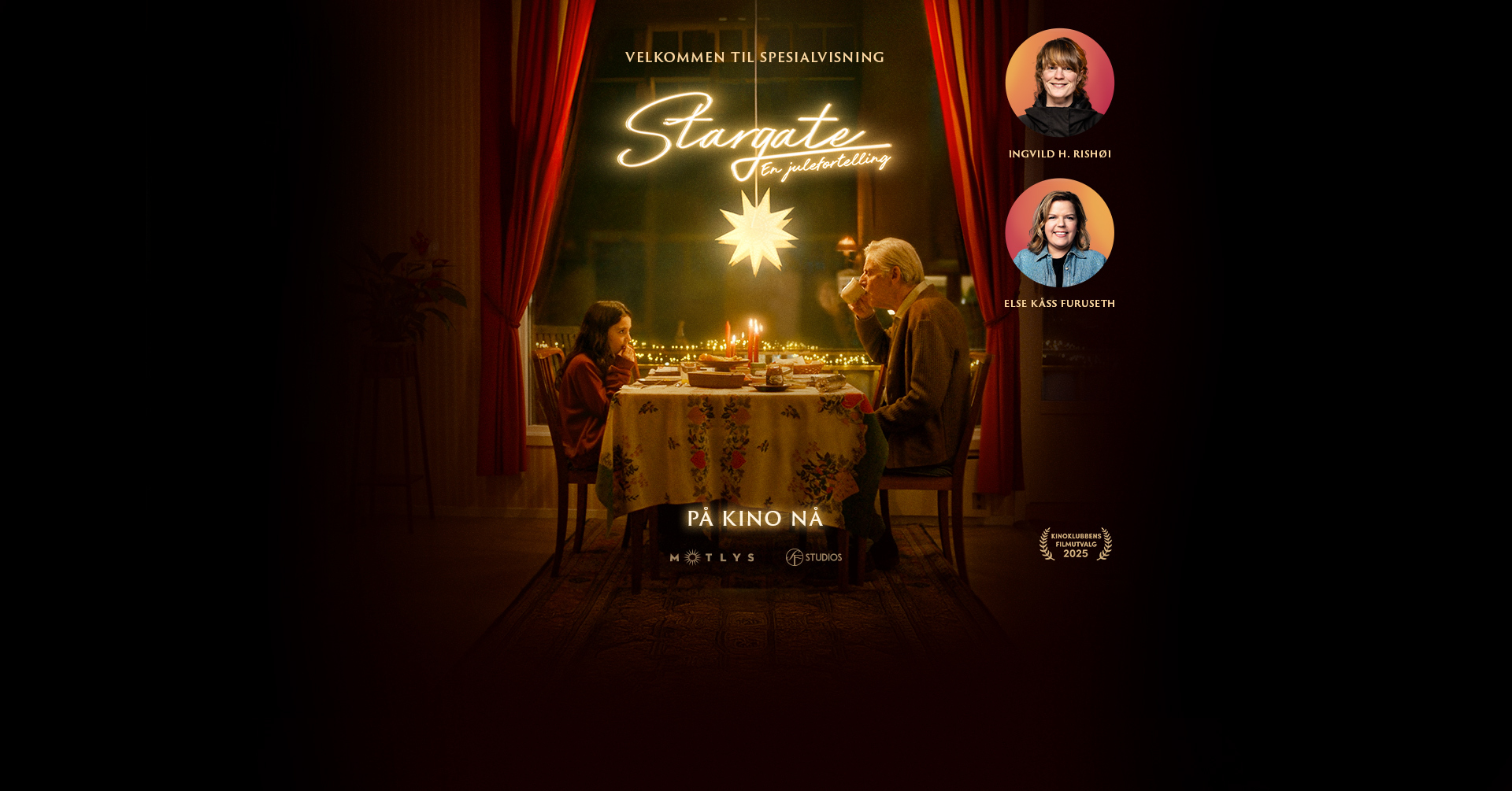 Velkommen til spesialvisning av Stargate – en julefortelling, hvor Else Kåss Furuseth og forfatter Ingvild H. Rishøi møtes til en samtale om filmen, om boka, om jula og om medmenneskelighet.
