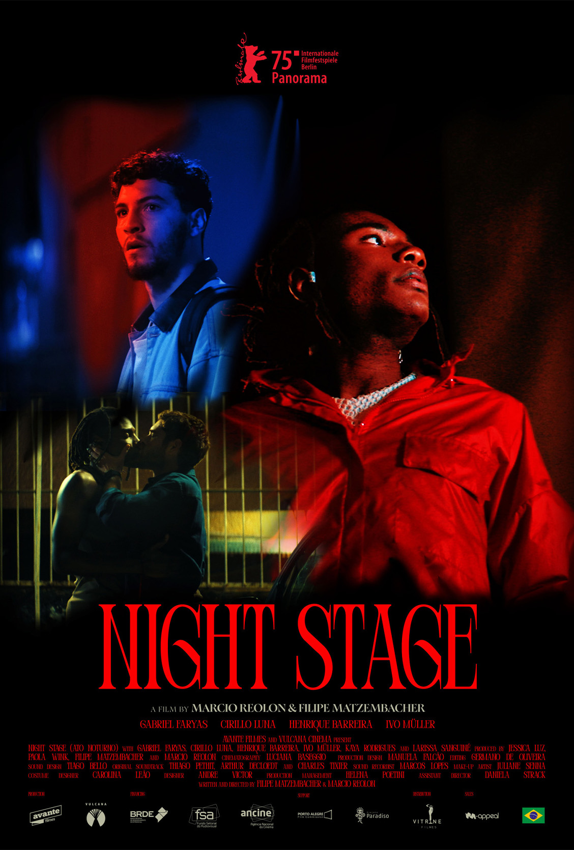 Fort blir sjansen for å bli tatt på fersken en sentral del av sexlivet deres. Night Stage tar utgangspunkt i en av 80- og 90-tallets store filmsjangre, den erotiske thrilleren, men med en tydelig skeiv sensibilitet. For Matias og Rafael blir leken både frigjørende og truende – en måte å bryte med rollene som samfunnet og karrierene deres krever av dem, samtidig som risikoen for å bli avslørt kan ødelegge alt de har bygget opp. Resultatet er en forførende og tidvis skamløst provoserende film, badet i neonlys, erotikk og bekmørk humor.